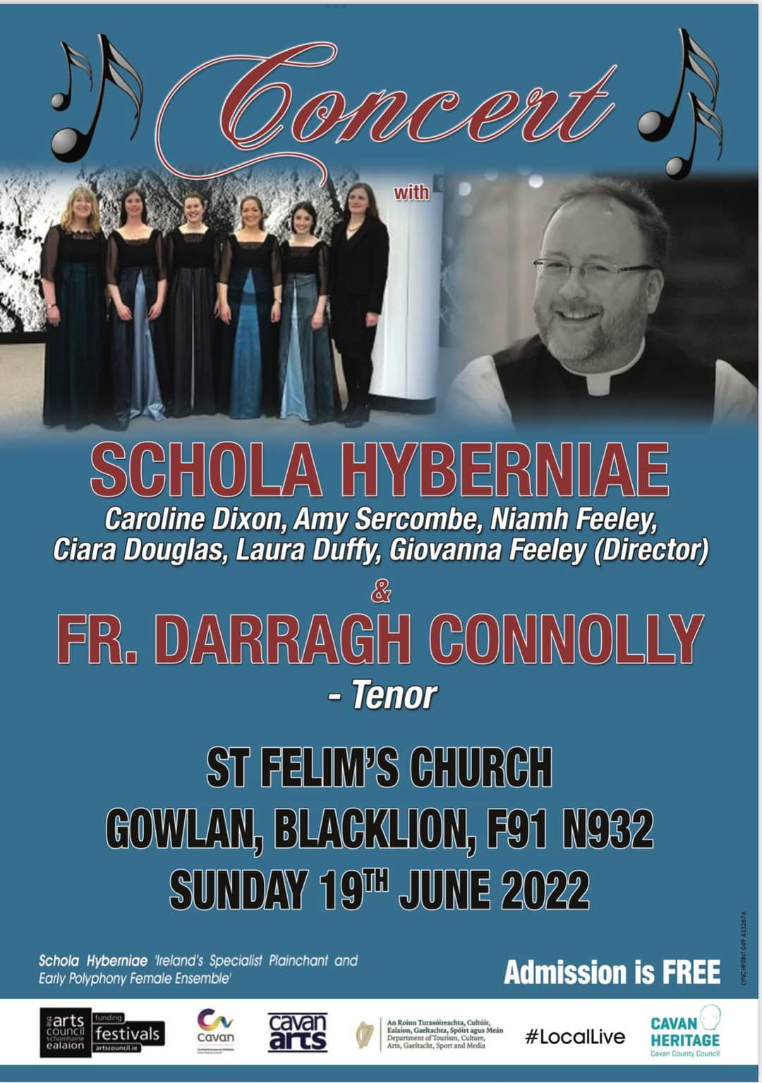 On 19 June, Schola Hyberniae travelled to Blacklion at the invitation of the Heritage Office of Cavan County Council to perform in a concert with local musicians and Darragh Connolly, tenor.
